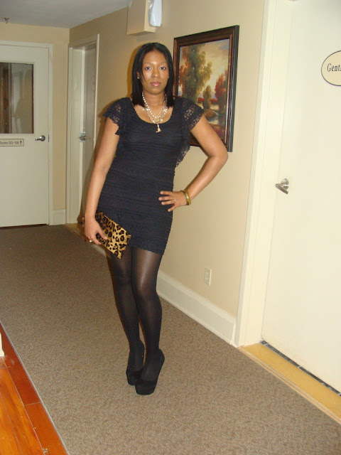 Steve Madden Pumps, Cheetah Clutch, H&M Lace Dress , & Forever 21 Accessories